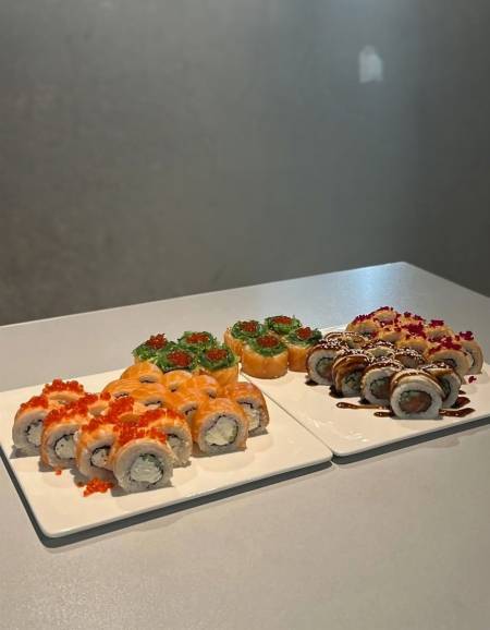 Ролл королевский, ролл эгоист, ролл нежный омлет, 1/2 ролл морской коктейль.
